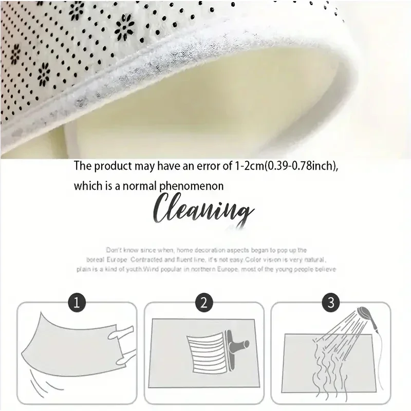 1.Material: O tapete é feito de flanela.É macio, confortável, amigo da pele, amigo do ambiente e absorvente de umidade.
